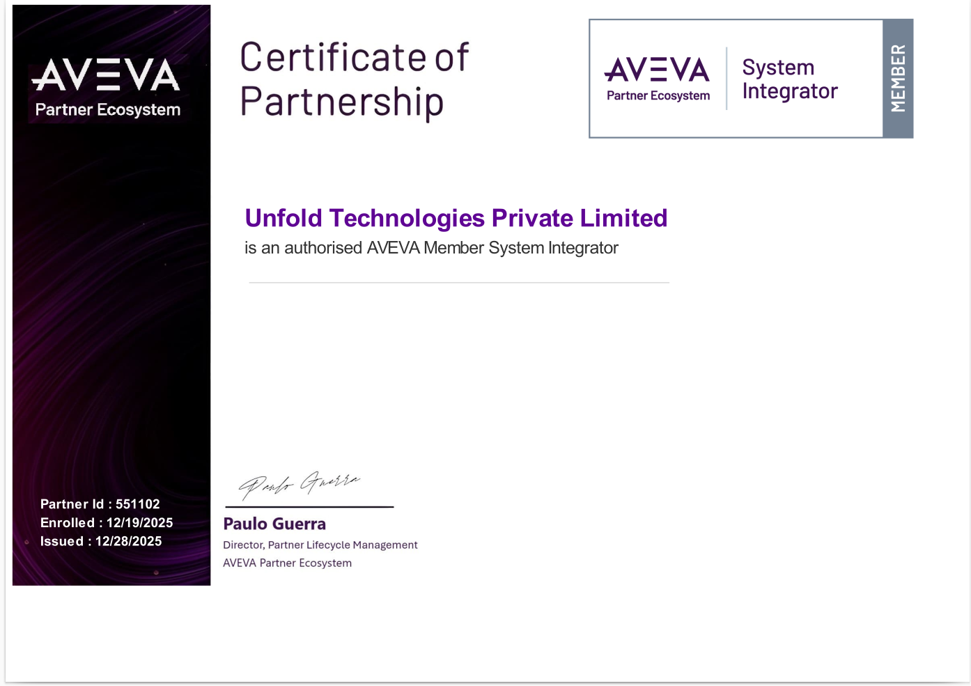 Now Unfold Technologies is a AVEVA authorized System Integrator